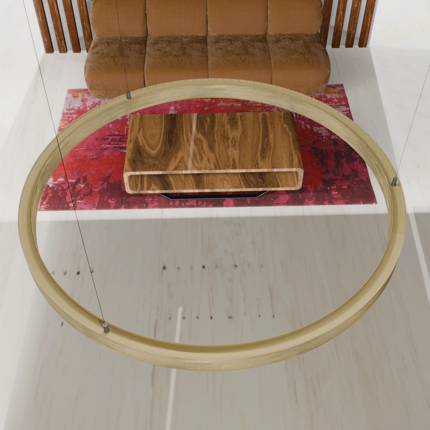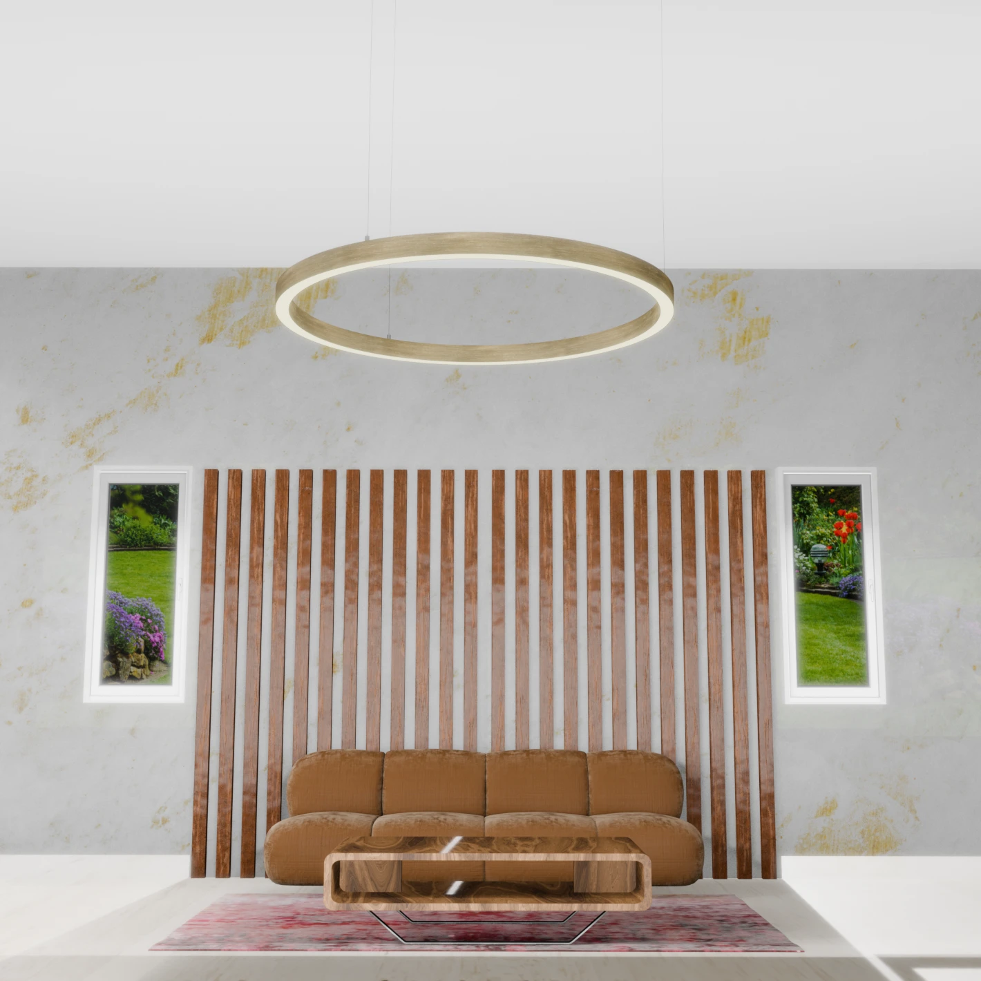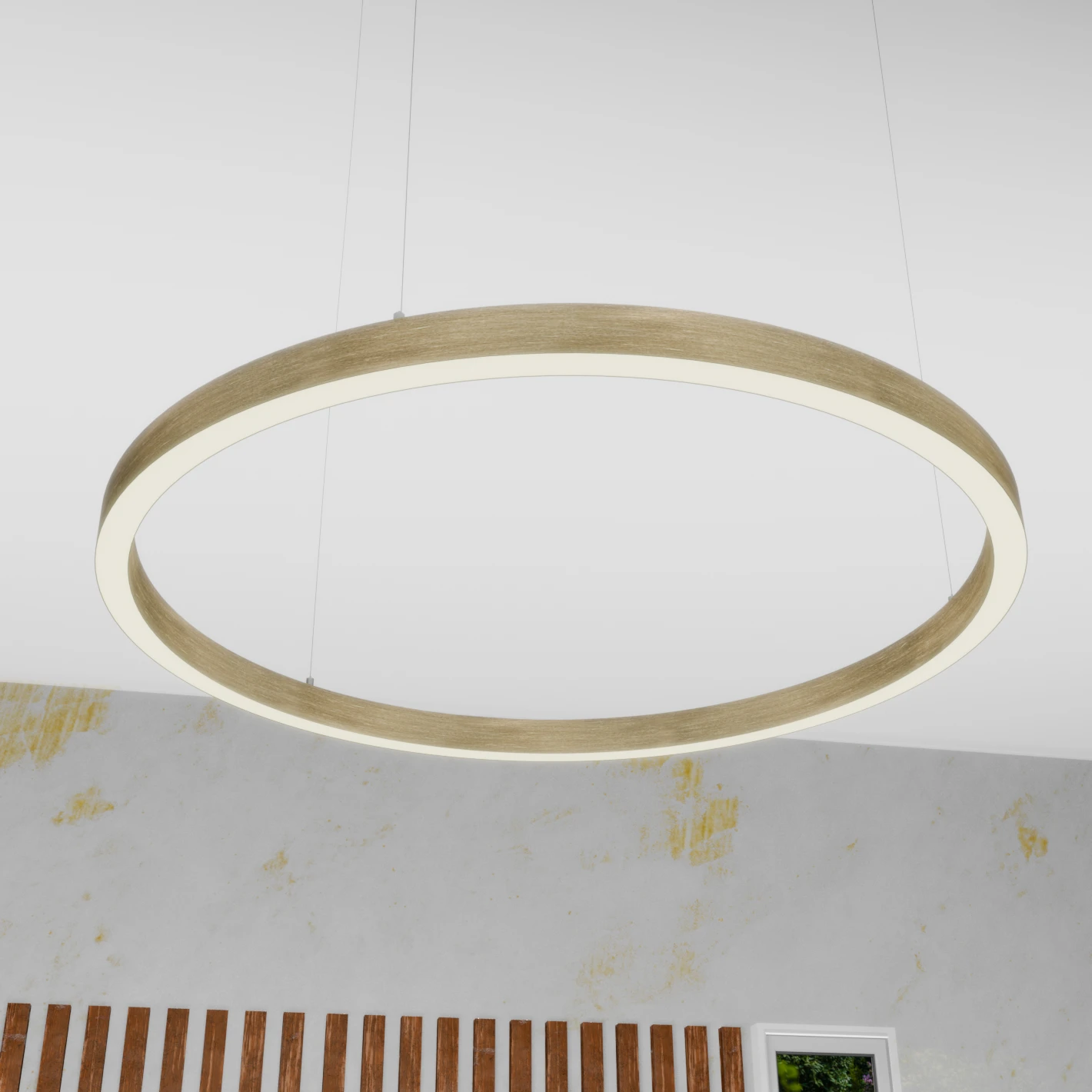 Deze brushed gold ring of light is te verkrijgen in meerdere afmetingen van 40cm tot 180cm.