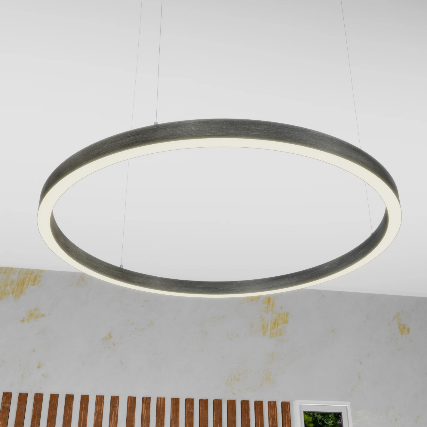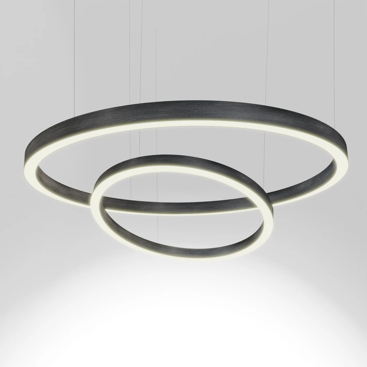Deze brushed zilver ring of light is te verkrijgen in meerdere afmetingen van 40cm tot 180cm.