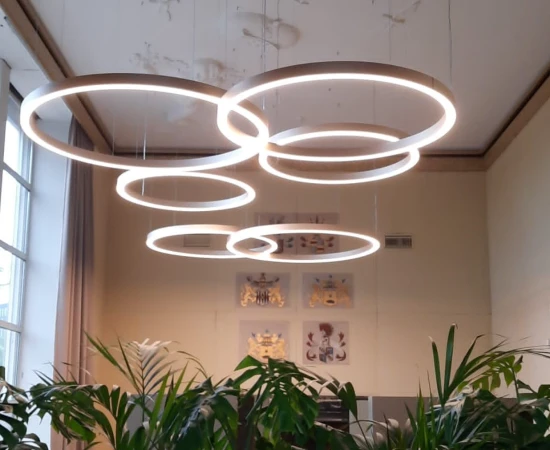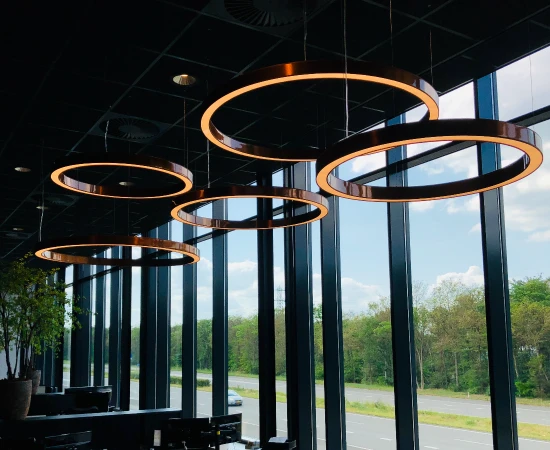 Dankzij ons maatwerk krijgt u de vrijheid om alles aan te passen. Kies zelf de lichtkleur die de perfecte sfeer creëert, het ophangsysteem dat past bij uw stijl, de kleur die het beste aansluit bij uw interieur, en zelfs de dimopties om de ambiance te regelen. Samen maken we uw visie werkelijkheid!