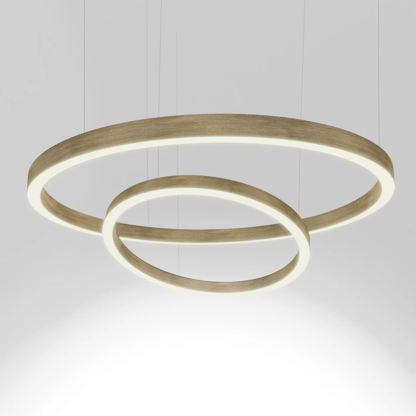 Deze brushed gold ring of light is te verkrijgen in meerdere afmetingen van 40cm tot 180cm.